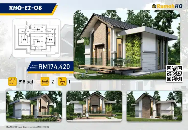 Transform your dream home into reality with the stunning RHQ-E2-08 design—an exclusive, elegant, and minimalistic banglo featuring 2 cozy bedrooms and a convenient bathroom, all for just RM 174,420! Don’t wait; download your free PDF design now and start your journey to a beautiful home today!