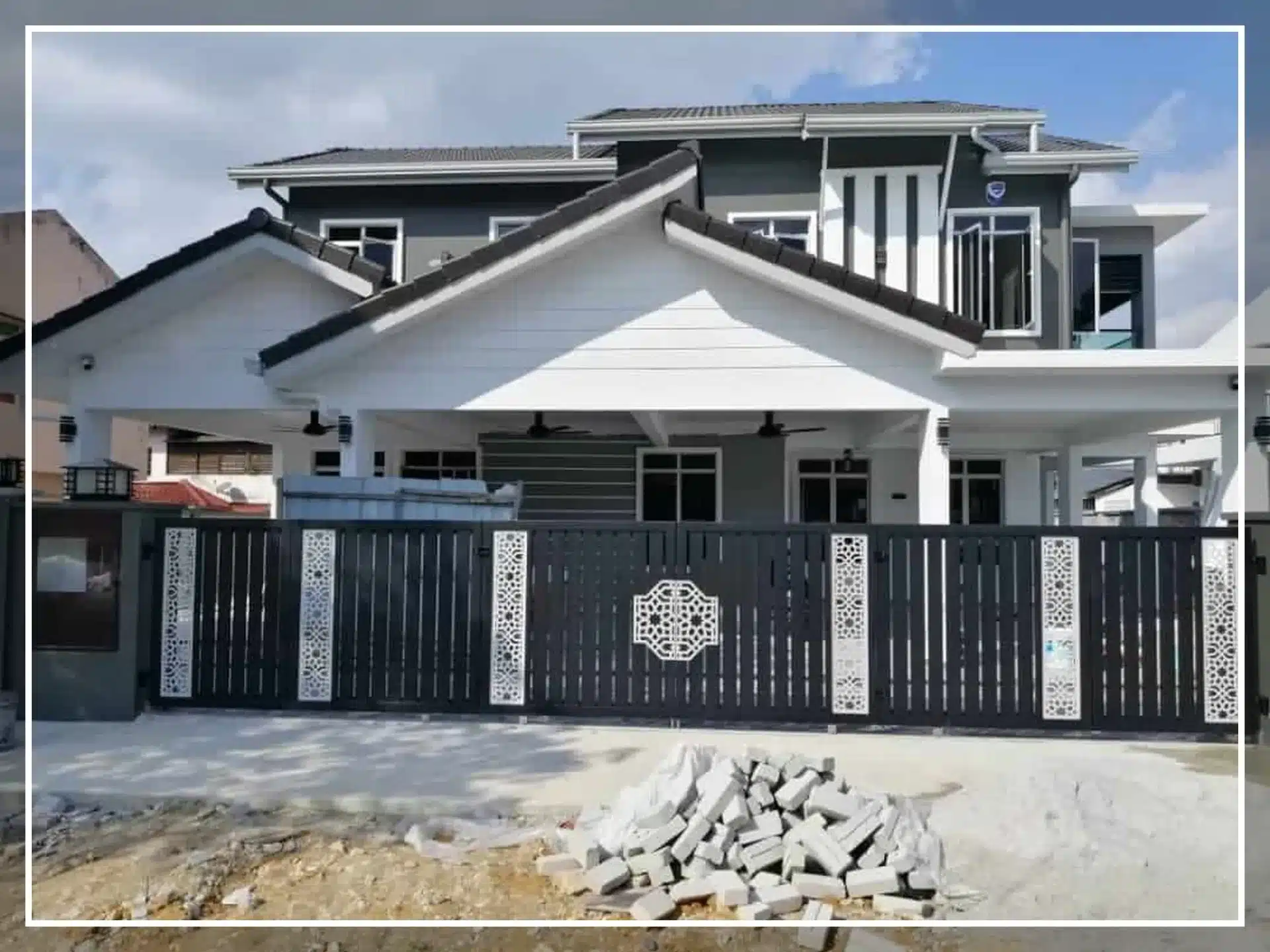 3. Pagar Unik: Pilih pagar dengan reka bentuk minimalis tetapi kukuh.